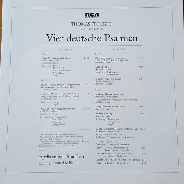 Thomas Stoltzer - Die Vier Deutschen Psalme / The Four German Psalms / Les Quatre Psaumes Allemands