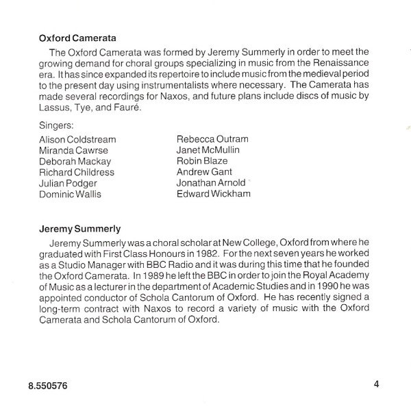 1994 or later repress with SID codes. This version has [Sonopress logo] in matrix. [r=13272933] has SONOPRESS in matrix. No SID codes. Recorded in the Chapel of Wellington College, Berkshire on 29th, 30th June and 1st July, 1992 by kind permission of the Chaplain. Manufactured in Germany Cover Painting from "Scenes from the Life of Christ" by Paolo da Venezia