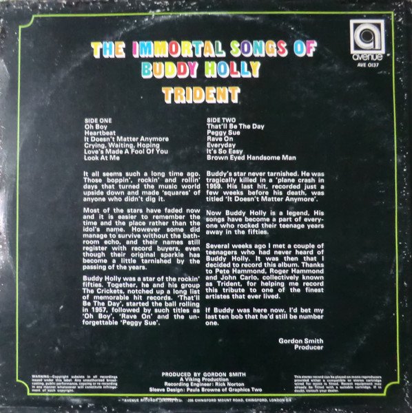 Trident (12) - The Immortal Songs Of Buddy Holly