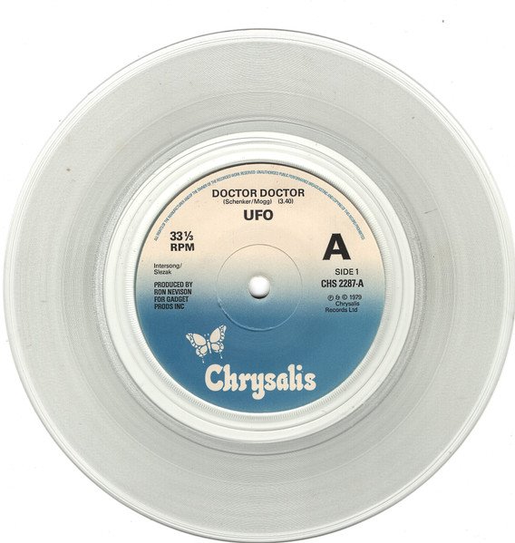 A banner with "Limited edition in clear vinyl" is printed on front of the sleeve. A similar clear vinyl issue but without the limited editon banner on the sleeve is here: [r23984510] A & B1 are live, B2 is studio recording Label Notes: Produced By Ron Nevison For Gadget Prods Inc [Tk.1, and 2] Intersong / Slezak [Tk.3] Thth Music Ltd [Tk.1, and 2] ℗&© 1979 Chrysalis Records Ltd [Tk.3] ℗&© 1977 Chrysalis Records Ltd