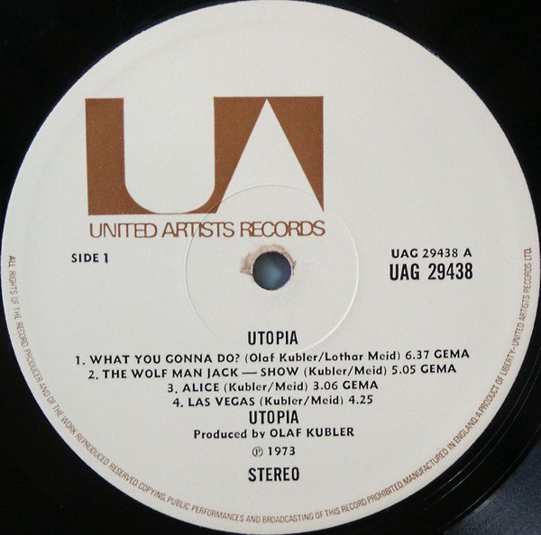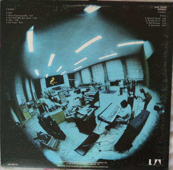 Text on bottom of the back sleeve: HK/HO/73 A PRODUCT OF LIBERTY/UNITED ARTISTS RECORDS LTD. 37/41 MORTIMER STREET LONDON W1 (R) TRADE MARK OWNED & AUTHORISED BY UNITED ARTISTS INC. Track A2 called "The Wolf Man Jack – Show" on labels and "Wolf-Man Jack Show" on gatefold. In 2000 reissued as by Amon Düül II.