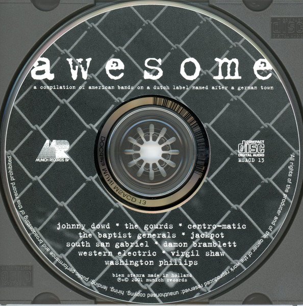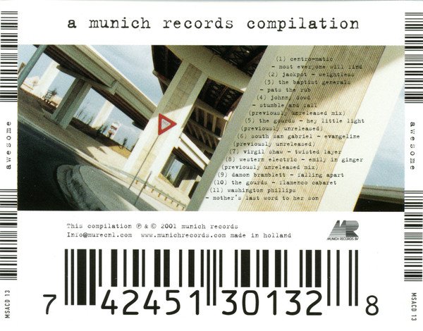This compilation ℗ + © 2001 Munich Records Made in Holland awesome - a compilation of american bands on a dutch label named after a german town (front & cd) a munich records compilation (rear)