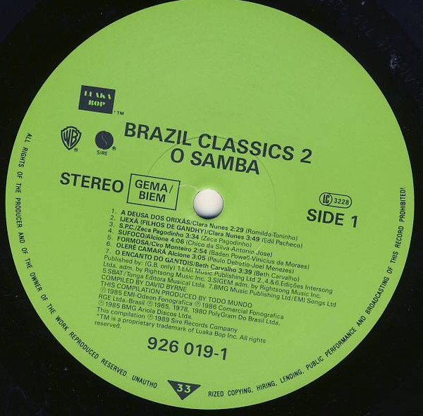 This compilation ℗ 1989 Sire Records Manufactured In Germany / Pressé En Allemagne / Record Service A Warner Communication Company