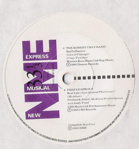 Given free with the N.M.E. Sept. '85. [Issue date is 28th September 1985.] Label states: ''Not for sale''. Note: Some copies exist with the labels on the wrong side. ℗ 1985 NME A1, A2 ℗ 1985 Polydor Records B1 ℗ 1985 Demon Records B2 ℗ 1985 CBS Records The runouts are etched.