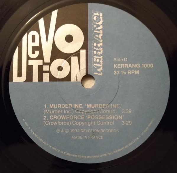 This E.P. available only with Kerrang! New and exclusive tracks! Over 14 minutes of Music! A1 taken from the forthcoming Murder Inc album 'Murder Inc'. A2 taken from the forthcoming Crowforce album 'Crowforce'. B1 taken from the forthcoming Paradise Lost album 'Shades Of God'. B2 taken from the forthcoming Candlemass album 'Chapter VI'. Made in France. Pressing plant identified by the runout etchings. Side D - (P) & (C) 1992 Devotion Records. Side M - (P) & (C) 1992 Music For Nations.