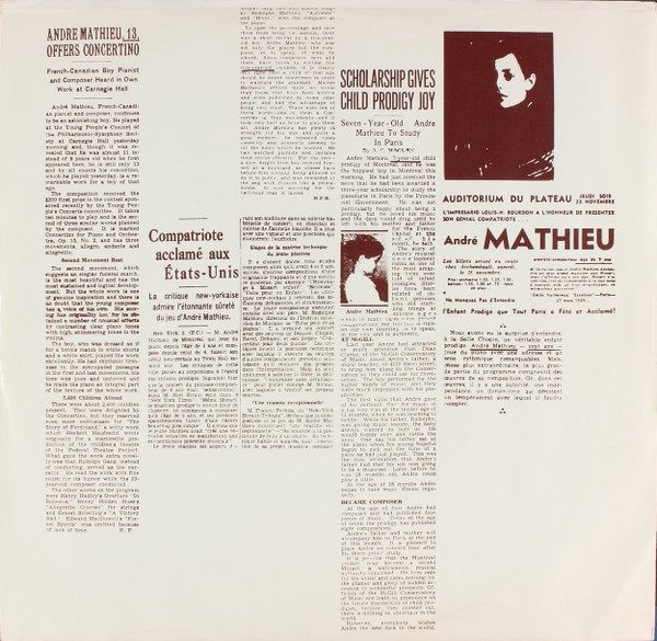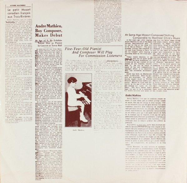 Integrated musical concept from the works of André Mathieu Recorded at Studios RCA (Montréal), mixed at Le Studio Morin Heights.