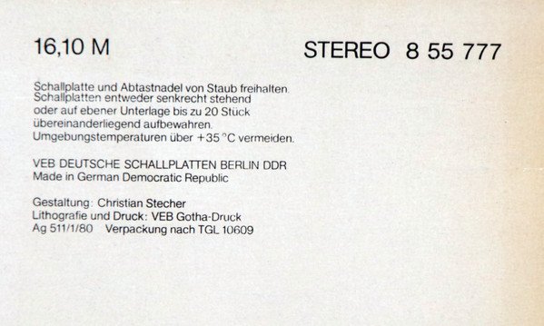 - Record Company – VEB Deutsche Schallplatten Berlin