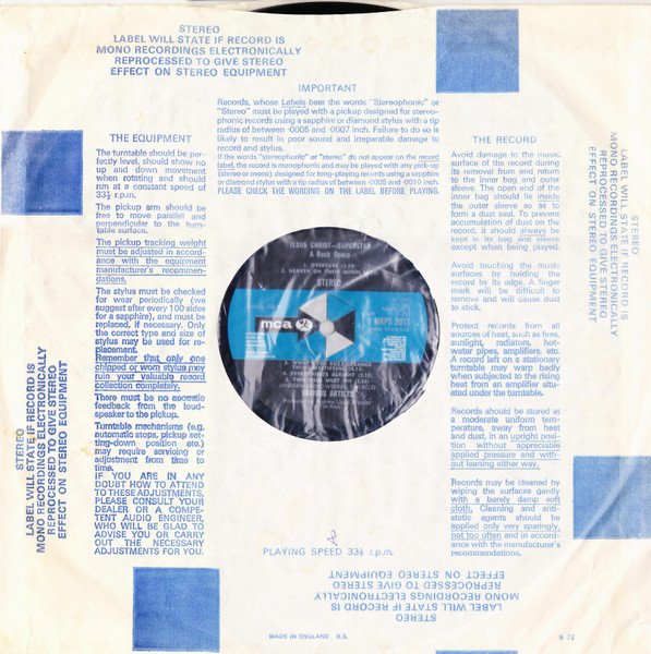 Release year identified by the manufacturing date on inner sleeve - sleeve 1. 9-72 - Sleeve 2. 10-72 Gatefold