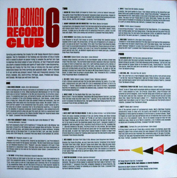 Includes 12" colour sheet with individual track notes Black Neutral Inner Sleeves Ⓟ&Ⓒ 2023 Mr Bongo Worldwide Ltd. Track D1 named on cover & label "I Do Love You" on insert "I Do You Love" Track heard and the title is clear: "I Do Love You" Credits to C5 & D2 not identifiable Runouts stamped, "MRBLP270" etched