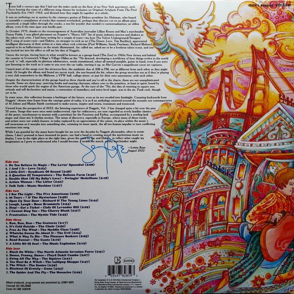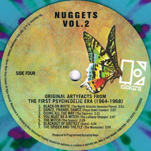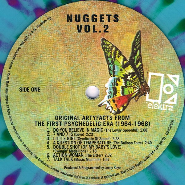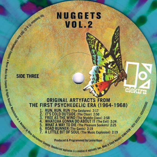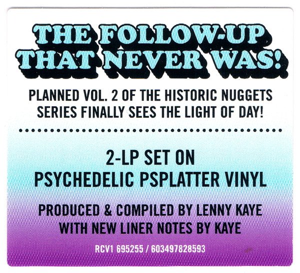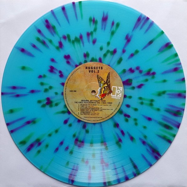Gatefold sleeve. Nearly identical packaging to the 2 x LP 'Vol. 2' within the 2023 Nuggets 50th Anniversary box set (which is black vinyl); this is pressed on colored "psychedelic splatter" vinyl.