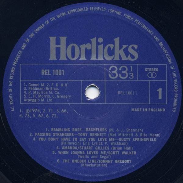 Produced by Phonogram. Printed in England by Robert Stace. Made in England. A1 & B2 - ℗1974 A2 - ℗1971 A3 - ℗1966 A4 & B5 - ℗1973 A5 - ℗1967 A6 - ℗1972 B1 - ℗1969 B3 - ℗1964 B4 - ℗1968 B6 - ℗1959 Publishers: A1 - Comet Rose A2 - Francis, Day & Hunter A3 - Feldman/BRITCO A4 - Peter Maurice Music Co A5 - E. H. Morris A6 - Gregory Arpeggio Music Ltd B1 - Pattern Music Ltd B2 - Weiss/Avemb Songs Ltd B3 - Intersong Music Ltd B4 - Essex Music Group B5 - Screen Gems Columbia B6 - Chappell Ltd