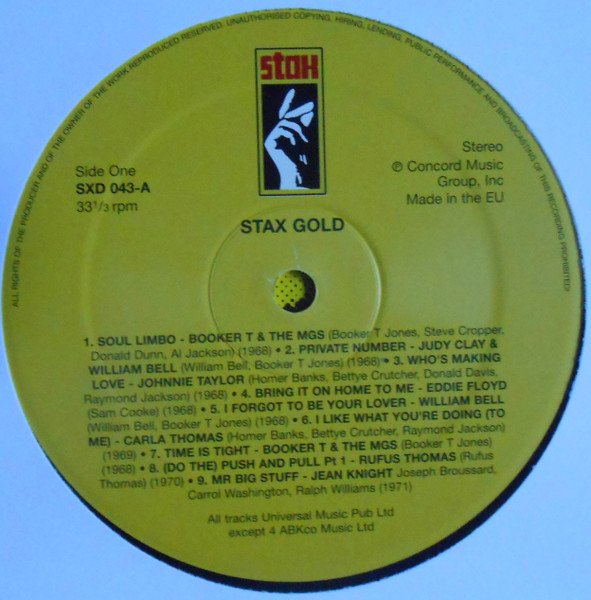 Stax Records marketed & distributed by Ace Records Ltd. Digitally transfered from original analogue master tapes. Post-production at The Digital Editing Suite. Photographs courtesy of Fantasy, Inc. The copyright in this sound recording is owned by Fantasy, Inc. and is licensed to Ace Records Ltd. This reissue has a cover variant. There is no "Stax Gold" printed on front