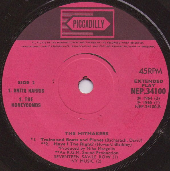 First catalogue N° is on label (NEP.34100) Second catalogue N° is on cover (NEP 34100) © PYE RECORDS LTD., 1966. Made in England.