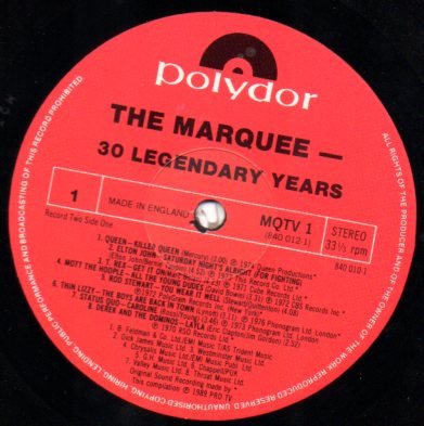 Issued in gatefold sleeve. Also available on: Cassette (MQTVC 1) CD (840 010-2) The company name used on this release "PolyGram Records Inc. (New York)" refers to [l129352]. Runouts are stamped