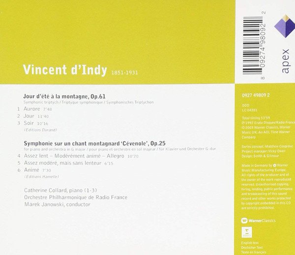 Vincent d'Indy - Jour D'été A La Montagne / Symphonie "Cévenole"