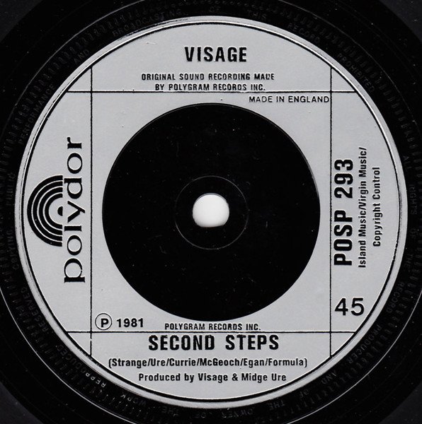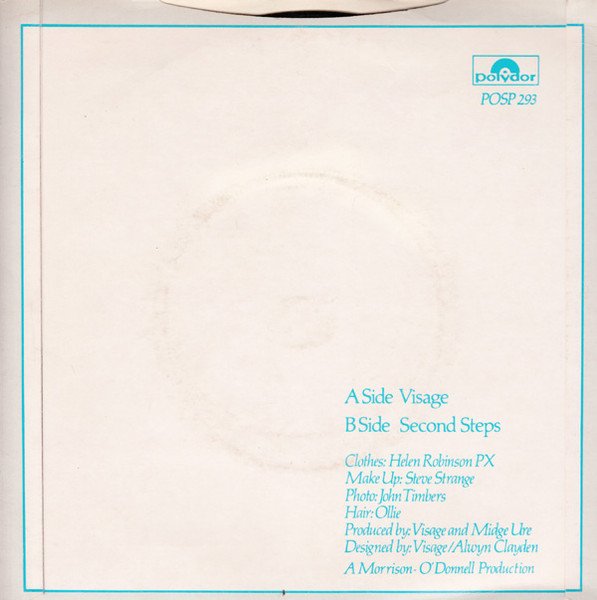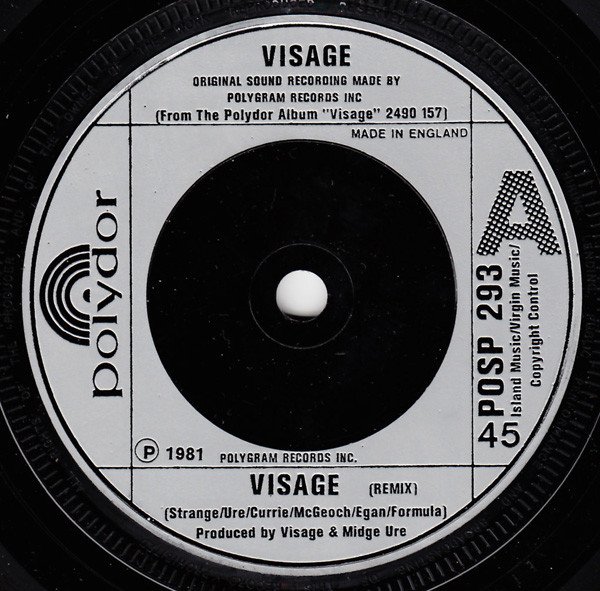 There are at least two versions of label colour. Silver as in these images and also a red version. Sleeve artwork available in three different versions often referred to as "chinese", "mirror" and "cowboy" and shows a picture of Steve Strange in different outfits and make up. All three versions have the same catalogue number. ℗ 1981 Polygram Records Inc. A Morrison-O'Donnell Production Made in England A: From the [l=Polydor] album [url=https://www.discogs.com/Visage-Fade-To-Grey/master/76985]Visage[/url] 2490 157