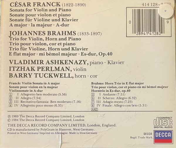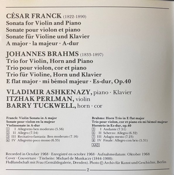 Vladimir Ashkenazy - Sonata For Violin And Piano In A Major / Trio For Violin, Horn And Piano In E Flat Major