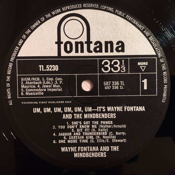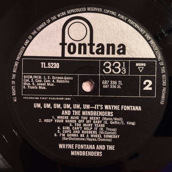 Label has "Um, Um, Um, Um, Um, Um - It's Wayne Fontana And The Mindbenders" as title. Flipback laminated front sleeve.