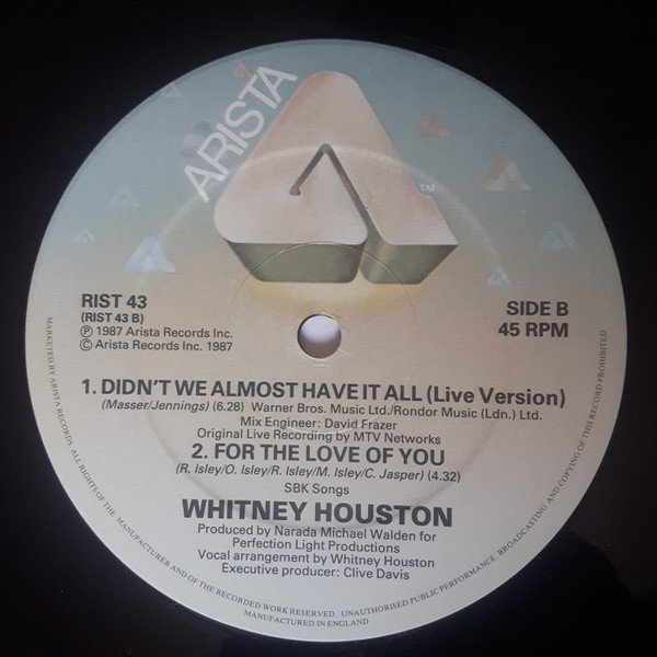 | B1 | Didn't We Almost Have It All (Live Version) | 6:28 |