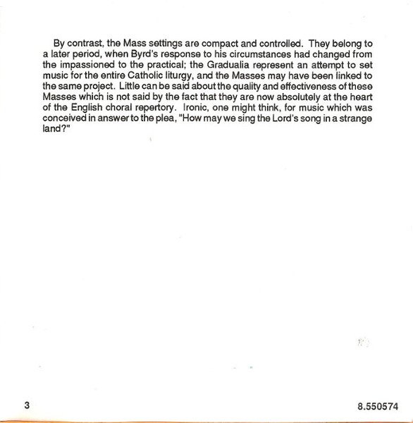 ℗ 1992 HNH International Ltd. © 1992 HNH International Ltd. Distributed by: MVD Music And Video Distribution GmbH, Oberweg 21C-Halle V, D-82008 Unterhaching, Munich Germany. Recorded in the Chapel of Hertford College, Oxford (by kind permission of the Principal and Fellows) from 16th to 18th December, 1991. Cover painting: Virgin and Child Enthroned with Six Angels Made in Sweden Title on spine: Masses For Four & Five Voices