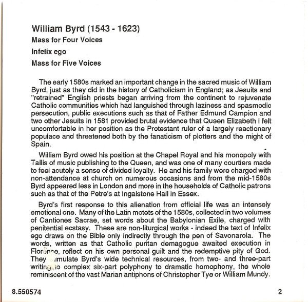 William Byrd - Mass For Four Voices / Mass For Five Voices / Infelix Ego