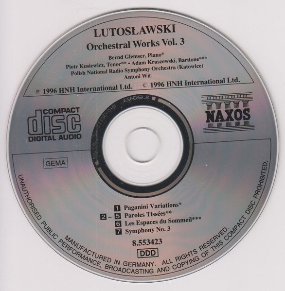 same as [r=3267619] with slightly different back coverRecorded in the Concert Hall of the Polish Radio, Katowice, on February 27th (Track 1), May 31st (Tracks 2 to 5), August 30th and 31st (Track 6) and May 25th and 26th (Track 7), 1995.(p) & (c) 1996 (c) German liner notes 1997Title on spine and disc: Orchestral Works Vol. 3
