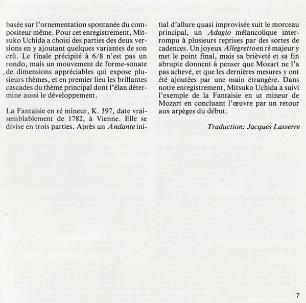 | 7 | Fantasia In D Minor, KV 397 = D-moll = En Ré Mineur | 7:17 |