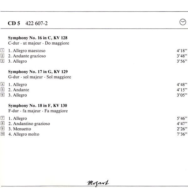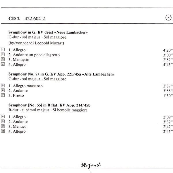 Wolfgang Amadeus Mozart - Early Symphonies = Frühe Symphonien = Symphonies De Jeunesse = Sinfonie Giovanili