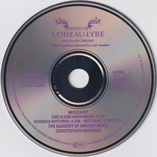 ℗ © 1984 The Decca Record Company Limited, London. Cd is manufactured by Polygram in Hanover, West Germany. Printed in West Germany Made in West Germany Digital recording Recorded October 1983, Kingsway Hall London. Booklet in English, French & German. Almost identical to [r=3500668] but with GEMA rights society Jewel case with smooth edges