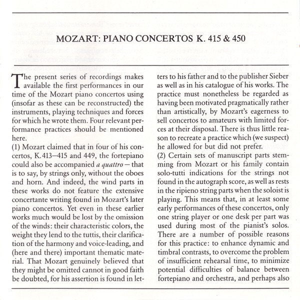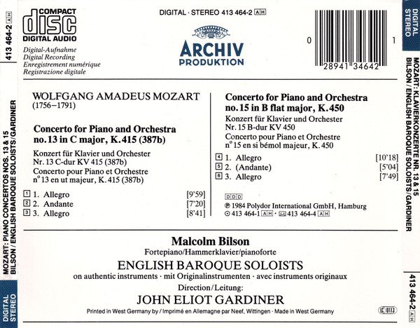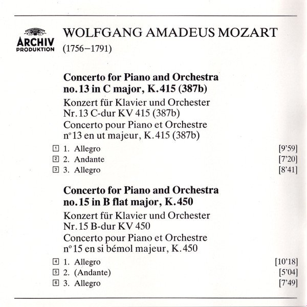 Wolfgang Amadeus Mozart - Piano Concertos Nos. 13 & 15 = Klavierkonzerte = Concertos Pour Piano K.415 & K.450