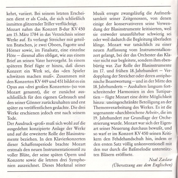 | Concerto For Piano And Orchestra No. 15 In B Flat Major, K. 450 |