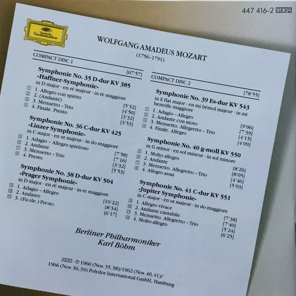 Recorded at Jesus-Christus-Kirche, Berlin. Tracks 1-1 to 1-4 (No. 35) and 1-9 to 1-11 (No. 38) recorded in October 1959. Tracks 1-5 to 1-8 (No. 36) and 2-1 to 2-4 (No. 39) recorded in February 1962. Tracks 2-5 to 2-12 (Nos. 40, 41) recorded in December 1961 and March 1962. Part of the series "The Original - Legendary Recordings From The Deutsche Grammophon Catalogue". Total playing time CD1: 67:57 Total playing time CD2: 78:55 ℗ 1960 (Nos.35,38)/1962 (Nos.40,41)/ 1966 (Nos.36,39) Polydor International GmbH, Hamburg © 1995 Deutsche Grammophon GmbH, Hamburg Printed in Germany by Neef, Wittingen Made in Germany This is a repress of the 1995 reissue.