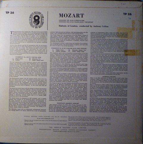 (At least) 2nd edition of UK WRC LP. Mono and stereo versions have identical sleeves with the same catalogue number - "TP 26". The mono version has "TP. 26" on its labels, while the stereo has "STP. 26". The stereo was issued with a rectangular "stereo" sticker on the sleeve. Offered as part of a "bonus" programme (hence the "TP" , rather than "T" - "P" meaning perhaps promotional), for 30 bonus points (in the U.K., members accrued 10 points for each LP purchased above the annual minimum of four per year). Also issued as a 3¾ ips mono reel-to-reel at this time.