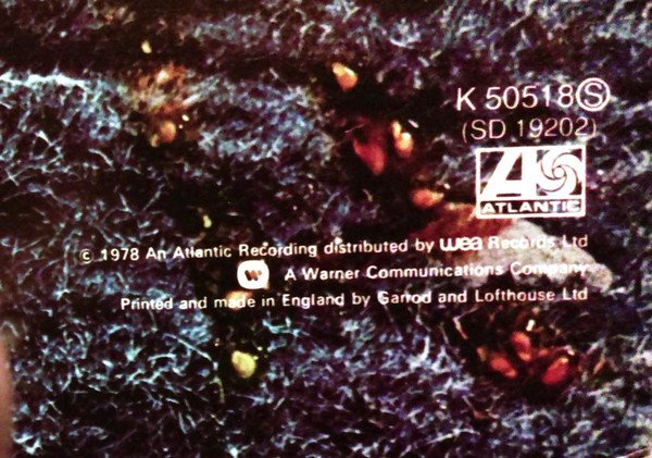 [l861702] pressing. [r=9201517] is the [l553982] pressing. [Back cover, bottom right] K 50518ⓢ (SD 19202) [l681] logo Disc cutting at Strawberry Studios, London Printed and made in England by Garrod & Lofthouse Ltd a Warner Communications Company (\') © 1978 An Atlantic Recording distributed by WEA Records Ltd Runout data is etched