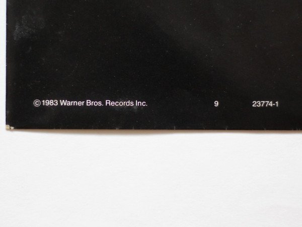 The sleeve features a barcode on the back in the top right corner. No catalogue numbers or any other details are printed below it. On the back, along the bottom, there is one line of text which states: Distributed by W Records Ltd. A Warner Communications Company 1983 Warner Bros. Records Inc. Includes the printed inner sleeve.